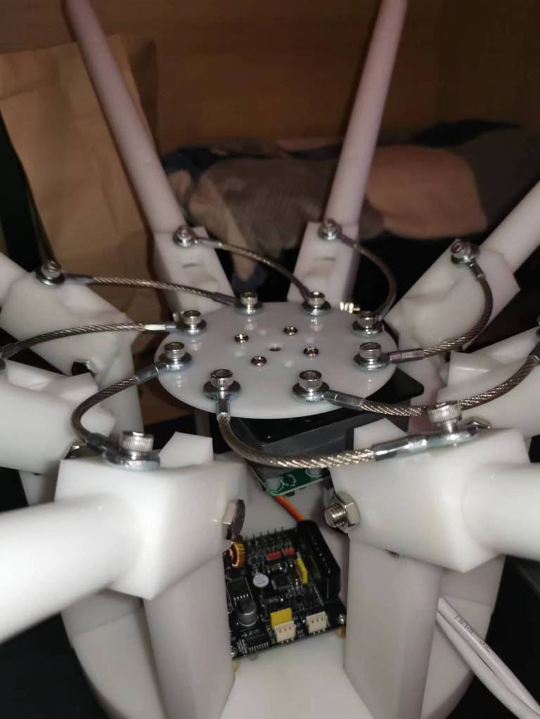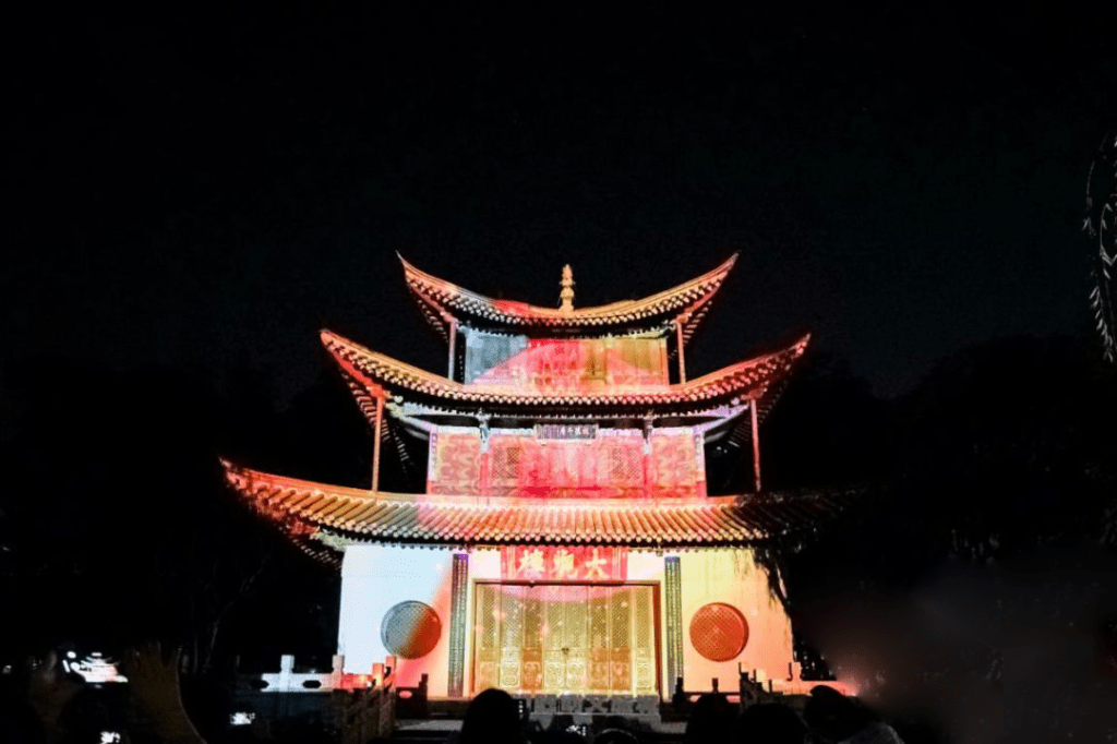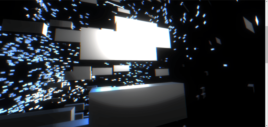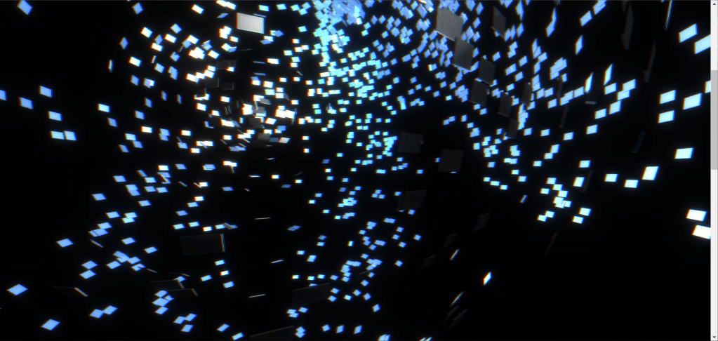 “忆观潮”运用计算机模拟浪潮的动态,提取其生成的顶点数据为源,加入了作者对潮水之形的图形效果创作,投影于随风飘动的布料之上。装置整体营造了潮水涌动的场景,用模拟的现实动态表现非现实的事物。